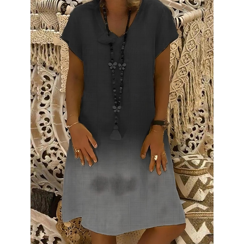 popular ! Women's Midi Dress Cotton Linen Dresses Casual Dress T Shirt Dress Tee Dress Cotton Summer Dress Casual Vacation Daily Regular Fit Ombre Short Sleeve V Neck Black Yellow Red Navy Blue Summer