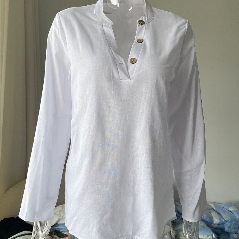 This Women's Shirt Texture Blouse Linen-Inspired Shirts Blouse Plain up-to-date Casual Long Sleeve V Neck Regular Tops Holiday Going out Buttons White Light Purple Khaki Light Blue Fall combines elegant design with practical functionality. Every detail has been carefully considered to ensure you get the best possible experience. The first-class construction means this product will serve you well for years to come.