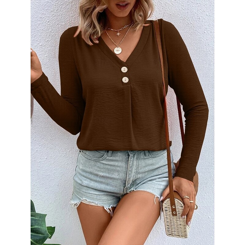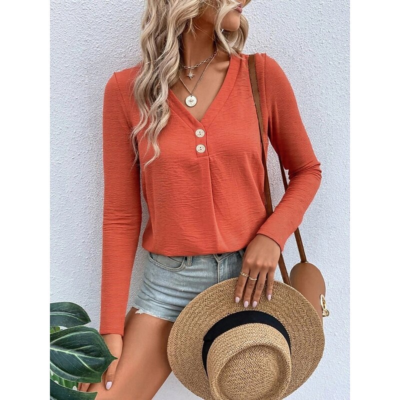 This Women's Blouse Solid Color sleek Casual Long Sleeve V Neck Regular Tops Daily Buttons Red Orange Brown Summer Spring Fall combines elegant design with practical functionality. Every detail has been carefully considered to ensure you get the best possible experience. The first-class construction means this product will serve you well for years to come.