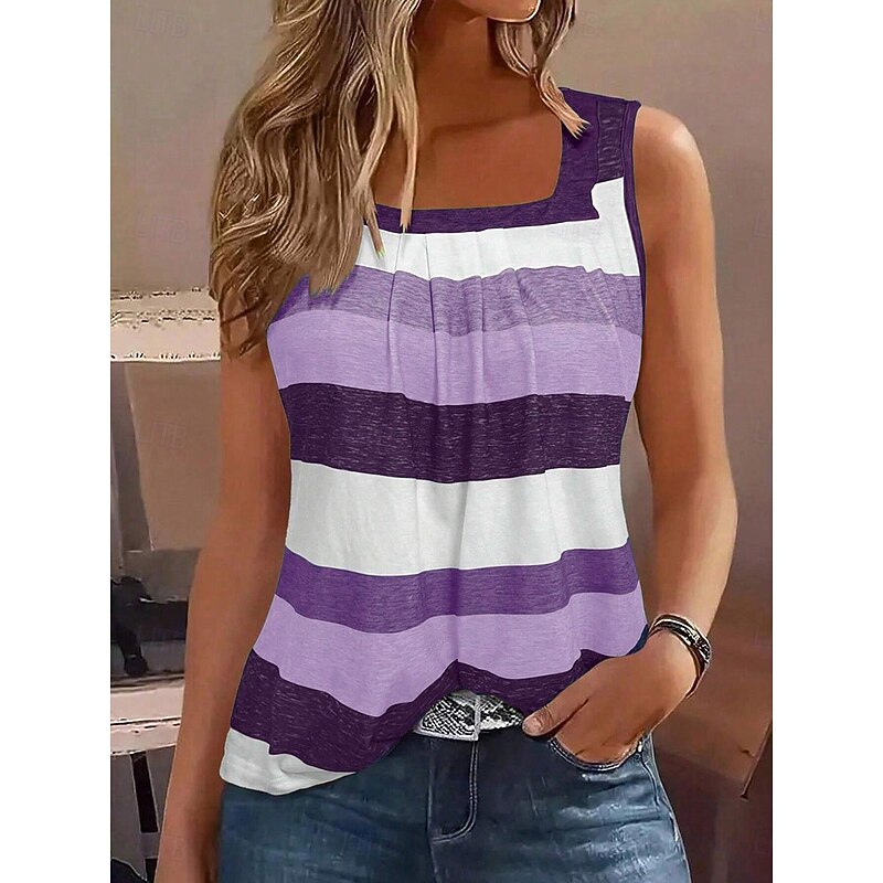 This Women's Camisole Tank Top Striped sleek Casual Sleeveless Square Neck Regular Tops Daily Print Blue Purple Green Summer combines elegant design with practical functionality. Every detail has been carefully considered to ensure you get the best possible experience. The first-class construction means this product will serve you well for years to come.