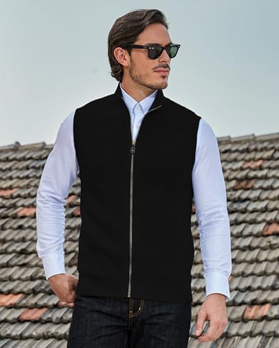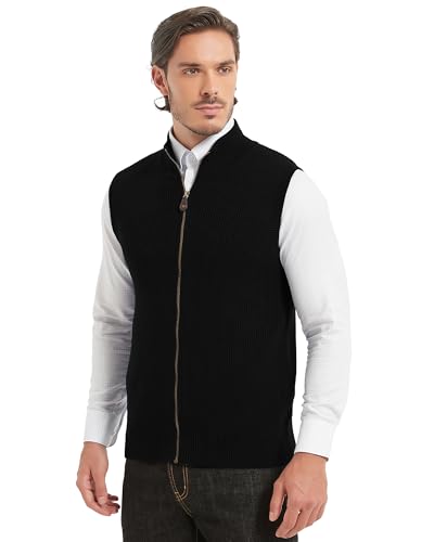 Kallspin Men's Wool Blend Sweater Cardigan Sleeveless Full Zip Cardigan Knit enduring thermal Wool Vest Sweater
