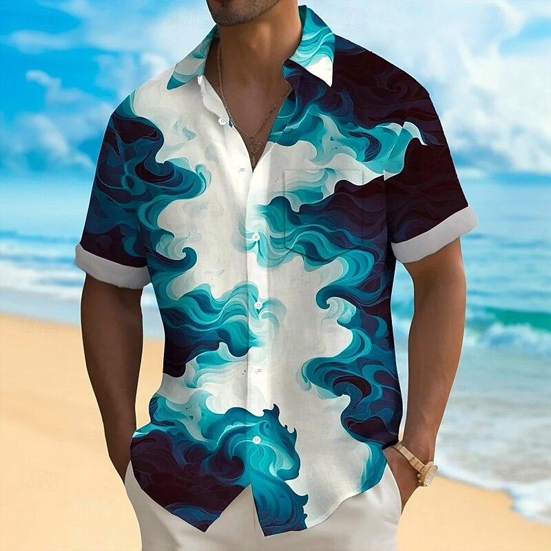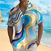 More information about Men's Gradient Waves Marble Shirt Summer Shirt Button Up Shirt Short Sleeve Fashion Casual Outdoor Vacation Dailywear Summer Spring Turndown 3D Print Collared Shirts Front One Pocket Black Brown