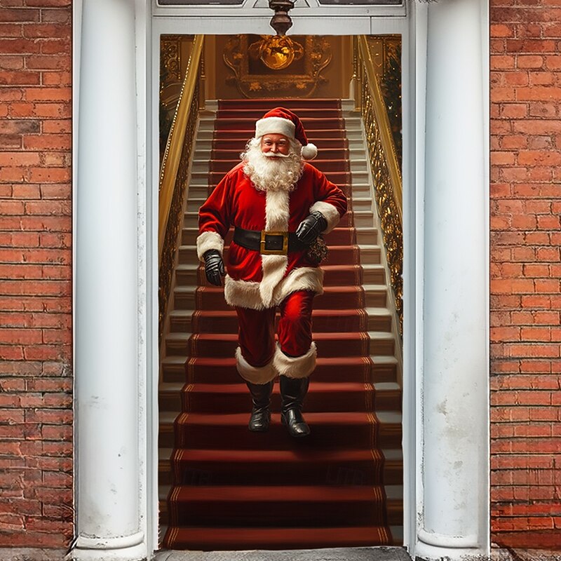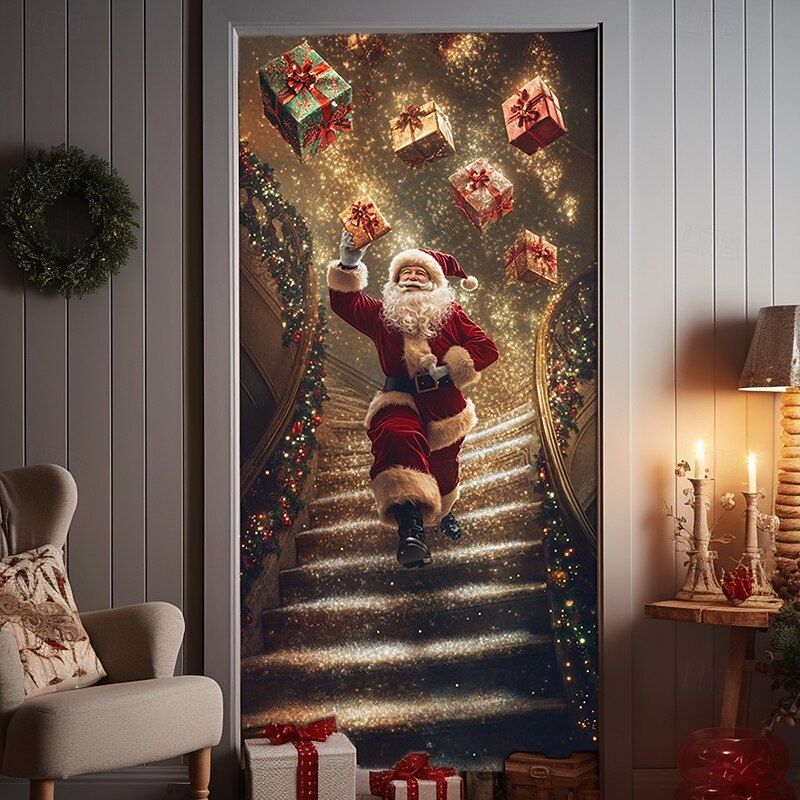 Christmas Door Decorations Door Covers Santa Claus Xmas Door Tapestry Door Curtain Decoration Backdrop Indoor/Outdoor Door Banner for Front Door Farmhouse