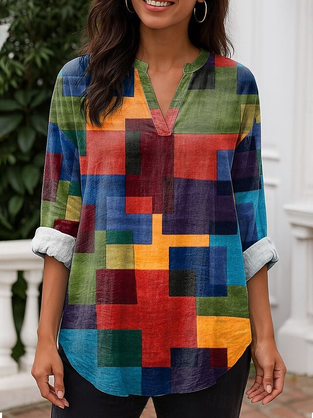Why Choose Women's Blouse Tunic V Neck Long Sleeve Boho Casual Tops Graphic Geometric Daily contemporary Regular Tops Work Daily Print Yellow Red Blue Purple?
