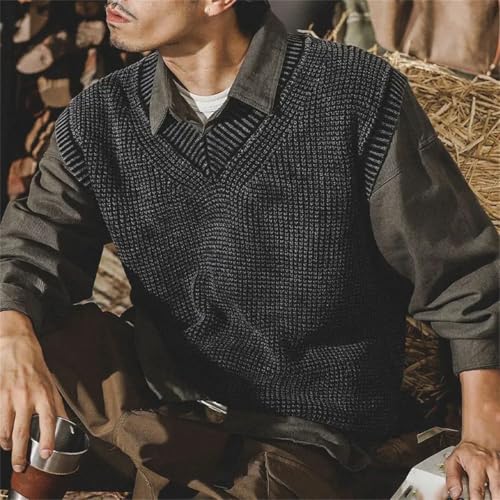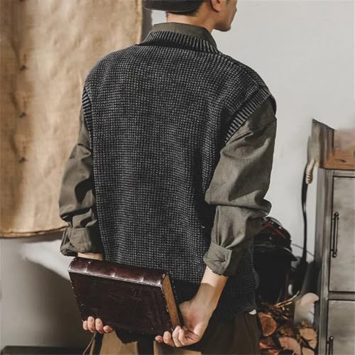 More information about Vintage Winter Sleeveless Men Sweater Vest Solid Fashion Loose Patchwork Pullover V-Neck Knitted Tank Tops