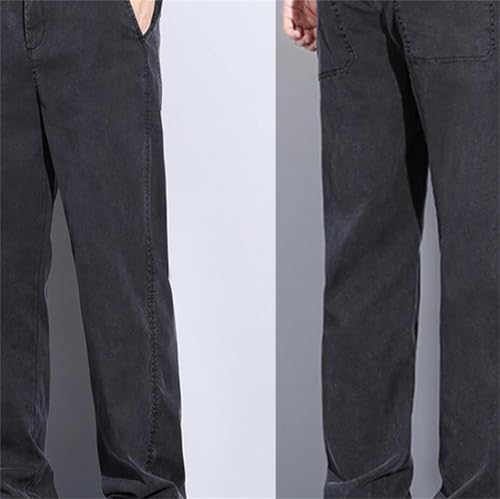 Men's Spring Fall Jeans – Thin gentle Loose Wide-Leg Straight Denim Pants, Elastic Waist Casual Plus Size