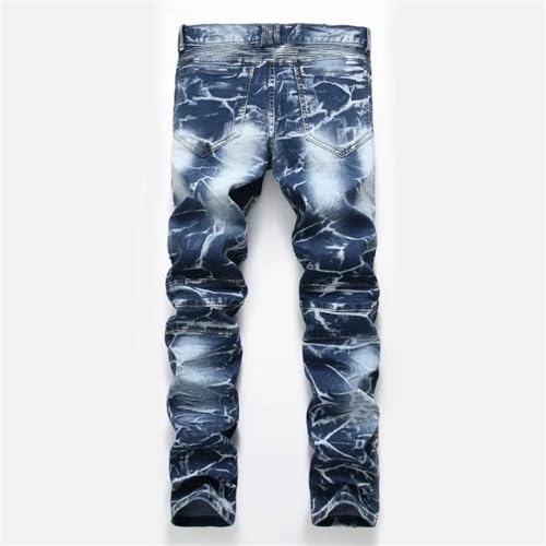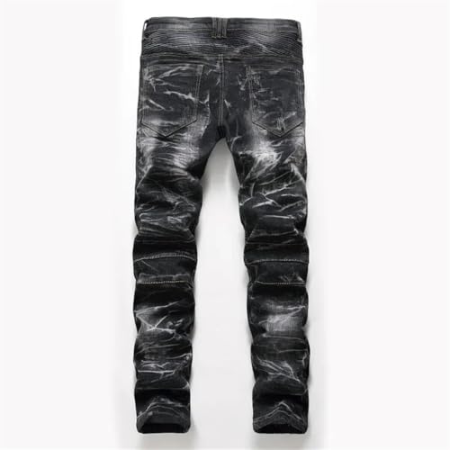 Men's Motorcycle Stretch Slim Straight Denim Trousers Zipper Pocket Retro Nostalgic Jeans