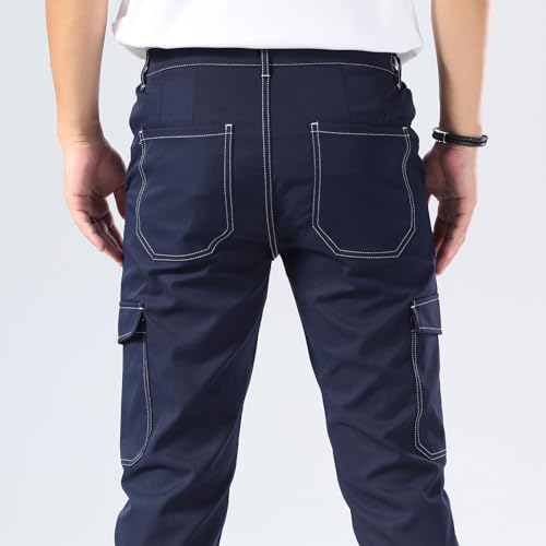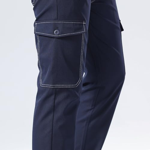 Plaid&Plain Mens Cargo Pants Slim Fit with Contrasting Topstitching and Multi-Pocket