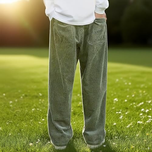 Mokaloha Corduroy Pants, Men's Vintage Casual Embroidery Logo Tether Drawstring Loose Elastic Waist Pocket Trousers