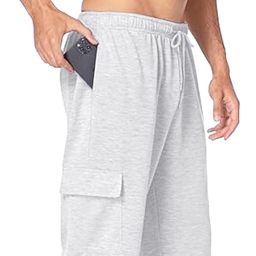 Men's Cargo Pants Straight Leg Baggy Open Bottom Drawstring Sweatpants Casual Athletic Lounge Pants
