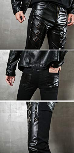 More information about Men`s Black Party Stage Performance Slim Fit Biker Faux Leather Pants