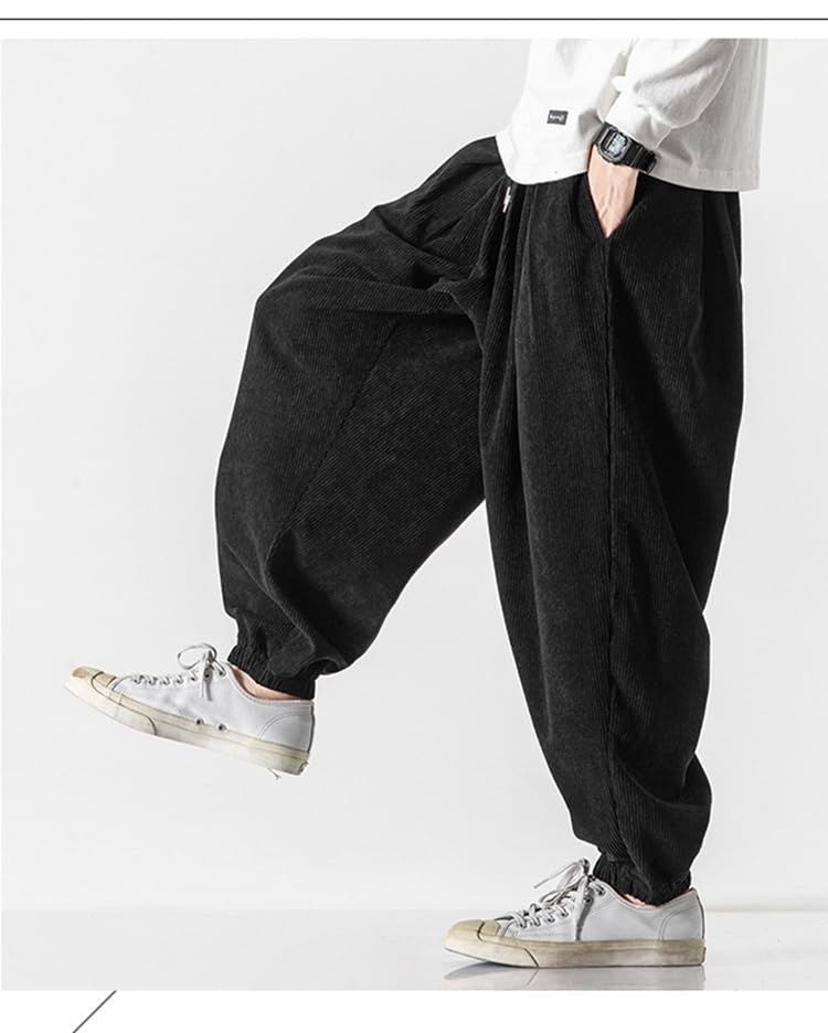 Men's Baggy Corduroy Vintage Cargo Pants Casual Streetwear Elastic Waist Hip Hop Harem Pants Joggers Sweatpants