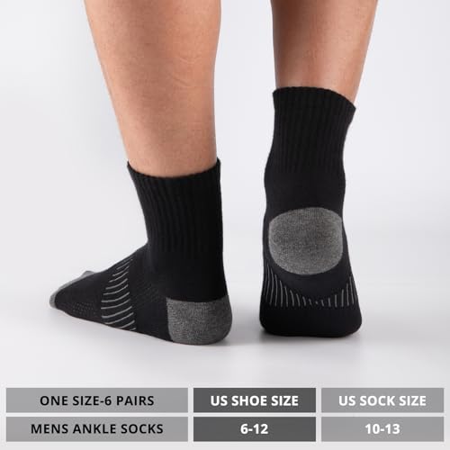 • [COTTON ANKLE SOCKS MEN]: Designed with top-grade cotton, our mens ankle socks deliver softness and long-lasting comfort. These mens quarter socks with moisture wicking material and a lightweight design to keep your feet dry. These cotton socks for men fit US mens shoe size 6-12, mens socks size 10-13.