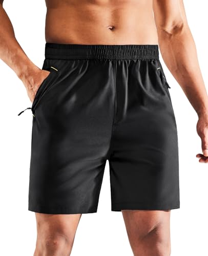 popular ! MIER Men's expedient Dry Running Shorts with Zipper Pocket, Elastic Waist Athletic Workout Exercise Fitness Shorts, 7 Inch