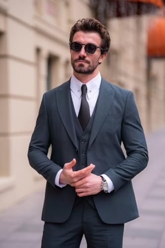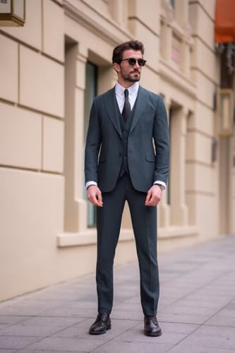 Fabric type: 80% Polyester, 20% ViscoseCare instructions: Dry Clean OnlyOrigin: Imported【SUIT FEATURE】Jacket: single breasted / two button / peak lapel / flap pockets / double vent; Vest: single breasted / 5 button / adjustable slider; Pants: flat front / expandable waist. A set of incredible high-quality suits made of relaxing and breathable materials, allowing you to maintain elegance in any occasion.【PACKAGE INCLUDED】3 piece suit men. Solid blazer jacket *1 + suit vest *1 + suit pants *1. Not included other accessories.【OCCASIONS】This men's 3 piece suits is suitable for multiple occasions, such as wedding, party, prom, dinner, graduation, daily life, business meeting, Homecoming, Christmas Halloween party, holiday, work and other Formal Occasions. Good Gift Choice for men.【CUSTOMIZABLE SUIT】Please check the SIZE CHART before buying. If you can not find the right size in the size chart, please chooseOne Sizeand provide your body measurements: chest; belly; waist; hips; shoulder; sleeve; blazer length; pants length; height and weight. We will customize this solid suit for you.【GARMENT CARE】Dry Clean Recommended if Conditions Permit. If you have to hand washed it, please keep the water temperature below 40 degrees Celsius and wash gently. Steam Ironing, hang the suit on the hangers when you are not wearing it. Perfect for everyday use. supreme materials and excellent craftsmanship ensure long-lasting durability.