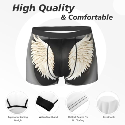 angel feathers print Mens Underwear Boxer Briefs Breathable supple Moisture Wicking with Fly Underwear for Men