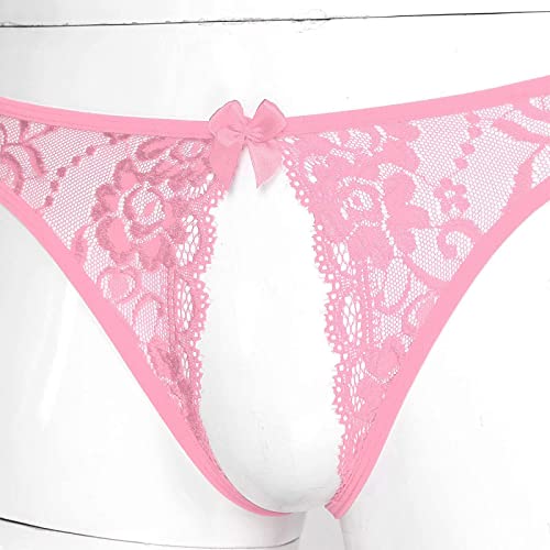 • Men Floral Lace Crotchless T-back G-String Thong Briefs