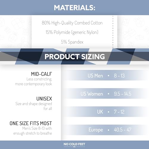 • ONE SIZE FITS MOST: Don't let cold feet ruin your day or fashion sense; keep yourself looking and feeling excellent with our best-selling mens patterned dress socks; impeccable style and function for any occasion. Fits US men's shoe sizes 8-13