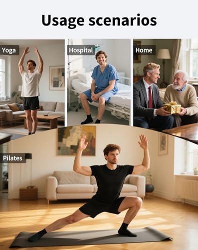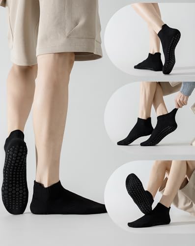 Fabric type: Cotton 78% Polyester fiber 19.9% Spandex 2.1%Care instructions: Machine WashOrigin: ImportedPattern: Solid【Enhanced Non-Slip Grip for Stability】---Engineered with durable silicone grip dots across the sole, these piltaes grip socks men provide superior traction on any surface. Whether you're working out or lounging, enjoy greater balance, control, and injury prevention during movement.【Comfort Meets Performance】---Crafted from 78% premium combed cotton with a breathable blend of polyester and spandex, these yoga sticky socks for men with grips offer all-day comfort and a secure fit. The moisture-wicking fabric keeps feet dry and fresh, even during intense workouts.【Tailored for Men’s Fit】---Designed to comfortably stretch and fit US men’s shoe sizes 9–14, these hospital anti slip socks offer gentle compression and a supportive feel. Ideal for men seeking comfort, functionality, and reliability in every step.【Ideal for Active and Daily Use】---From Pilates, yoga, and barre to gym training, hospital use, or relaxing at home, these versatile gripper socks for elderly deliver comfort and safety. They’re also great for sports like soccer, basketball, and boxing where grip and foot control matter.【Two Styles, Four Neutral Colors】---Available in short and crew lengths to suit different needs—short for breathability, crew for added coverage. Choose from four timeless shades (black, black-gray, medium gray, light gray), both feature convenient ear design for easy on/off, with neutral colors meeting men's practical and aesthetic needs. Perfect for everyday use. supreme materials and excellent craftsmanship ensure long-lasting durability.