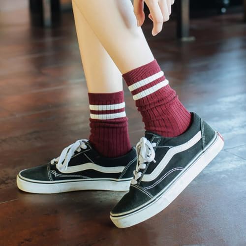 Pattern: StripedThe package includes:You will receive 10 pairs Womens striped crew socks in a random color and quantity to meet your daily replacement needs.One size that fits girls,boys,men and women.Suitable for fall and winterQuality material:These striped cotton crew socks are made of high-quality cotton,fine workmanship,skin-friendly soft,lightweight and breathable.Medium thickness,with good elasticity,easy to put on and take off,so that you stay comfortable all dayStriped design:timeless retro double striped design,simple fashion,everything,can match your various styles of clothing,skirts,skirts,shorts,jeans,school uniforms,casual wear,sportswear and so on.A pair of socks can be worn as a tall tube,or as a pile of socksHoliday gifts:These mens cotton striped crew socks fashion trend,classic look,never out of style.These striped tube socks are the best choice for birthdays,New Year,Valentine's Day,Christmas,Thanksgiving,you can send these cute retro striped socks to your family,friends,they will be very happy to receiveIdeal choice:These retro striped crew socks women are perfect for everyday wear,school,hiking,work,running,biking,playing basketball,soccer,tennis,etc.Women's striped socks easily match your various shoes,sneakers,casual shoes,leather shoes,flats,loafers,etc Perfect for everyday use. supreme materials and excellent craftsmanship ensure long-lasting durability.