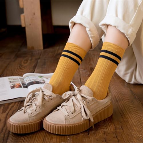 10 Pairs Womens Striped Crew Socks Vintage Striped Crew Socks Fashion Retro Long Socks For Women and Men,Random Color