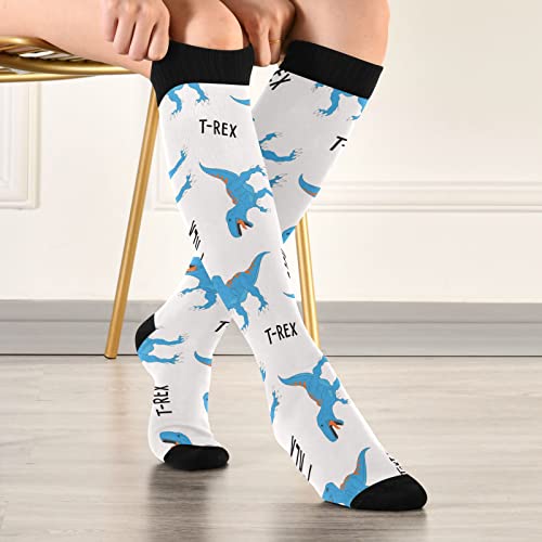 Wusikd T-rex Dinosaur Compression Socks for Women and Men Circulation Cute Animal Pattern Long Socks for Athletic Running 1