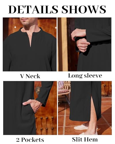Fabric type: 65%Cotton,35%LinenCare instructions: Machine Wash or Hand WashOrigin: ImportedMaterial: This kaftan for men made of 65% cotton and 35% linen, ligthtweight and soft,our thobe for men ensures ultimate comfort and breathability, allowing you to stay cool and relaxed all day long.Features: Our long sleeve kaftan thobe is designed with a henley collar,v neck,side split,long length,solid color,offering a classic and trendy look suitable for various occasions.Style: This mens muslim kaftan thobe shirts can be worn as a traditional Muslim attire, a comfortable sleepwear option, as nigtht shirts,nightgown even as a casual shirts gown. Big and tall mens kaftans robe provides you a confortable wear experience.Occasions: This thobe for men is suitable for summer, vacation, beach, pool party, holiday, Moroccan-themed dinner party, Easter program,loungewear,nightwear,and casual daily wear.Size: Size M-3XL,if you are not sure the size of the clothes, please carefully check the size chart before you purchase.If you have any concerns or questions, please don't hesitate to contact us. Choose our mens thobe and experience comfort and style like never before! Perfect for everyday use. supreme materials and excellent craftsmanship ensure long-lasting durability.