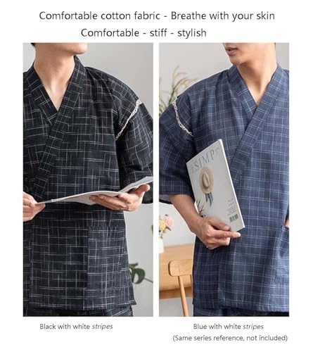 Fabric type: 100% CottonCare instructions: Hand Wash OnlyJapanese kimono pajamas. Main material: Cotton and linen. Loose and relaxing, Lightweight and breathable.Bathrobe size: Approximately US size L (label LL). Top length: 81 cm / 31, Chest size: 120 cm / 47, Sleeve length: 32 cm / 12.5. Trouser length: 58 cm / 23, Waist size: 80 cm / 31.4, Hip size: 120 cm / 47. Suitable for height 175 to 186 cm (5'7 to 6'1), weight 80 to 93 kg (176 to 205 lbs).Loose and lightweight cotton pajamas suit (shirt + shorts) adopt skin-friendly cotton gauze to design, very comfortbale, breathable, lightweight to hug your silhouette with utmost comfort so that you're able to focus on your sleep time with feeling comforty. Perfect gift for your family and friends.Japanese style kimono pajamas Suit. Kimono-style top secured with a tie at each side, with front pocket. Recommended hand wash.Thickness moderate, no loads feeling. Comfortable robes are comfy and ideal for daily wear, sleepwear, loungwear, vacation, spa etc. Perfect addition to your morning routine, relaxed evening plans, for shower party. It can help you to enjoy and relax yourself after a whole-day work. Perfect for everyday use. supreme materials and excellent craftsmanship ensure long-lasting durability.