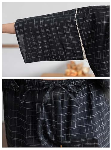 ZEALMAX Japanese Style Kimono Pajamas Shirt and Shorts Suit, Unisex Cotton Linen Loungewear Lounge Set Spa Bathrobe Casual Clothes Multicolor