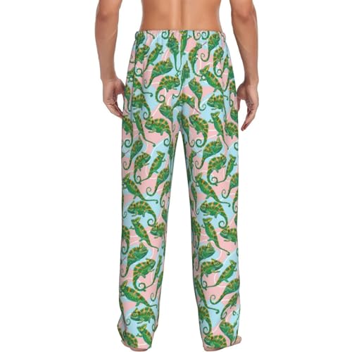 popular ! Pajama Pants Men - Cute Chameleon Lizard Green Men's Pajama Bottoms, Mens Cotton Pajama Pants