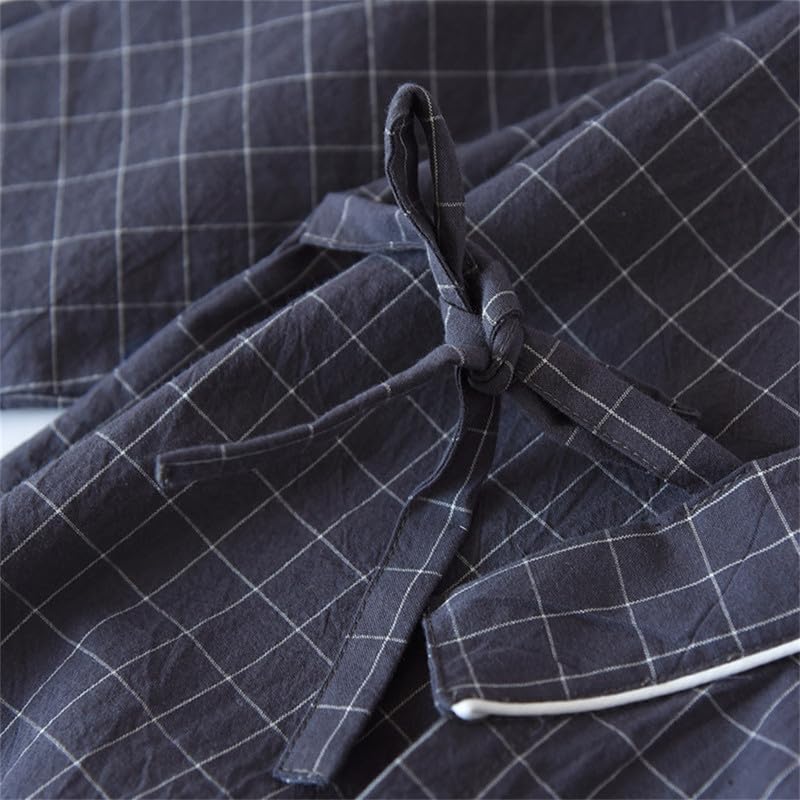 Shanghai Story Check Print Couple 100% Cotton Robe supple Lightweight Kimono Bathrobe Loungewear
