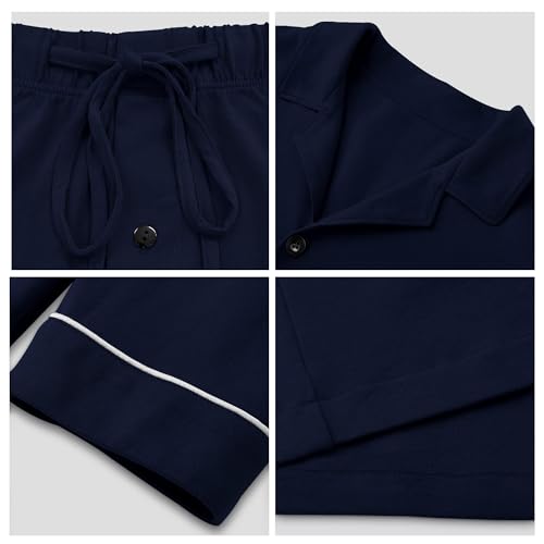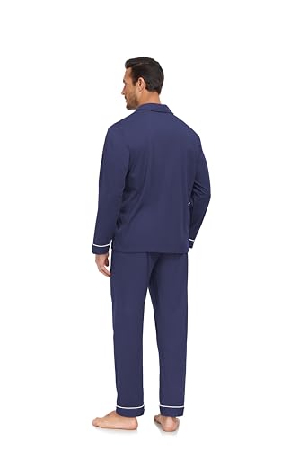 More information about COLORFULLEAF Men's 100% Cotton Pajamas Set Button Down Long Sleeve Sleepwear with Pockets(Navy Blue XL)