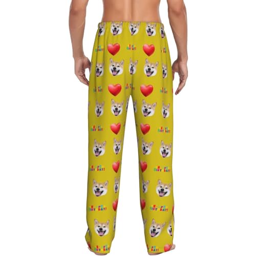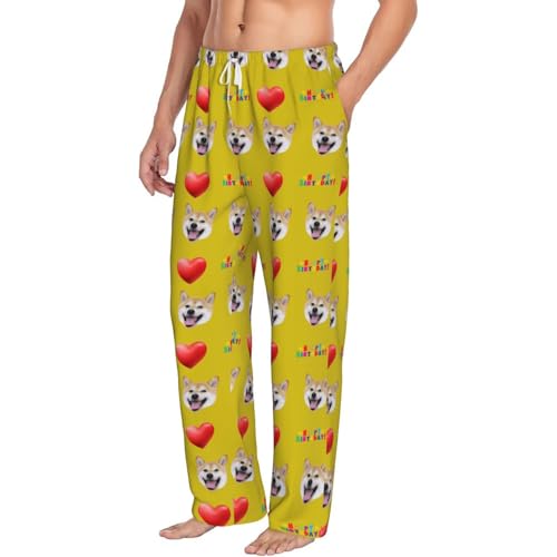 Personalized Pajamas Pants Birthday Gifts with Photo for Mens, Custom Happy Birthday Pj Bottoms Dog Pet Face for Women Husband