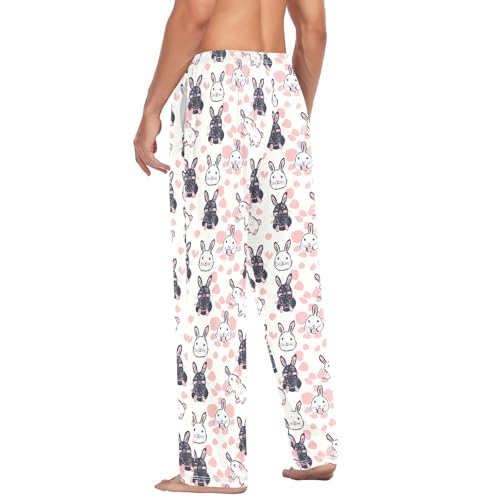 Men's Pink Bunny Pattern Pajama Pants with Pockets - Straight Fit Cotton Sleep Bottoms for Lounge & Nightwear#850