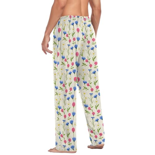 popular ! Men's Wildflowers Daisies Pajama Pants with Elastic Waistband | velvety Lounge Sleepwear | Breathable Sleep Pants for Home(545)