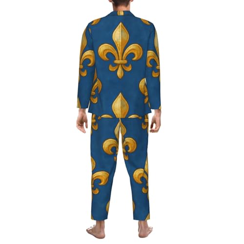 Mens Long Sleeves Pajama Set France Blue Fleur-De-Lis Cozy Two-Piece Loungewear For Nighttime Comfort,Casual Wear