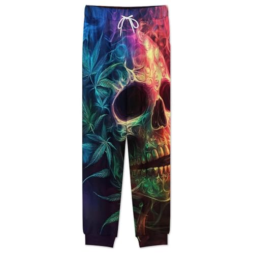 Skull Weed Leaf Smoke Pajama Set Long Sleeve Lounge Sets Sleepwear 2 Pjs Nightwear for Men Women