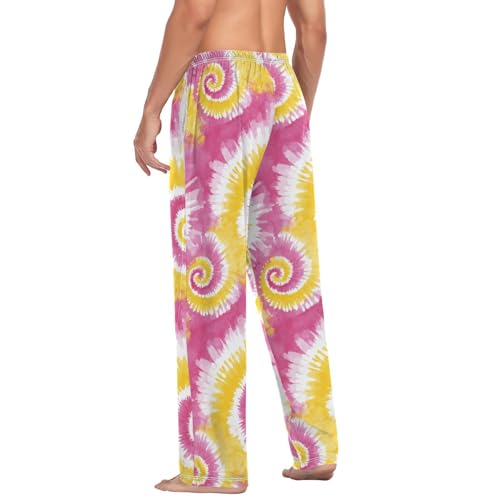 Vdsrup Men's Pajama Pants Tie Dye Yellow Pink Pajama Pants for Men PJs Bottoms Drawstring Pockets Sleep Lounge Pants S