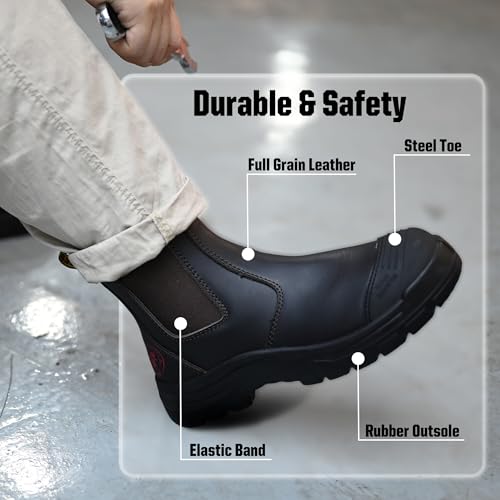 • Ultimate Protection: The ROCKROOSTER Bakken slip-on boots meet ASTM F2413-18 I/75 C/75 EH standards, featuring a resilient steel toe that shields your feet from drop and crush injuries. Work confidently, knowing your feet are safe and secure whole day long!