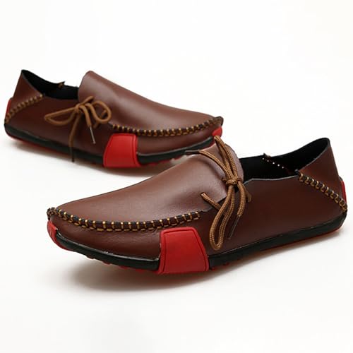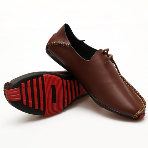 Men's Leather Handmade Strappy cushy Dress Loafers Fashion Non Slip Lightweight Stitching Details Flat Casual Walking Driving Shoes for Work Party Date Wedding