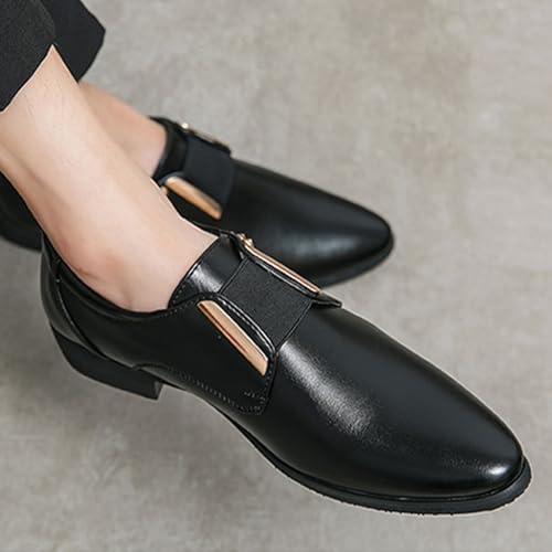 Men's Leather Metal Studded Dress Loafers Fashion Pointed Toe Low Top Slip On Block Heel Office Business Tuxedos Daily Non-Slip Party Prom Casual Shoes