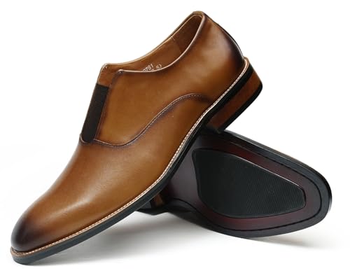 Santimon Mens Leather Loafers-Slip-Resistant Formal & Casual Dress Shoes-Cushioned Comfort for Weddings, Office