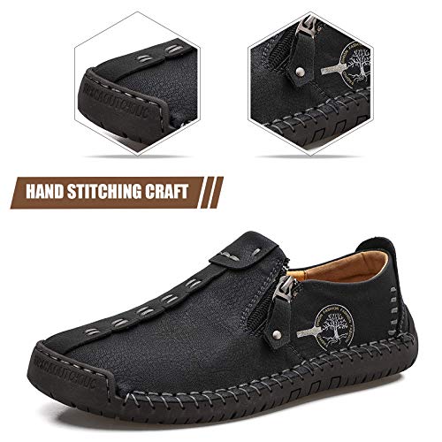 Mens Loafers Slip On Casual Shoes Leather Flat Penny Loafers Outdoor Lightweight Breathable Walking Driving Shoes Comfort iconic Hand Stitching Office Dress Work Shoes Anti Slip Round Toe Moccasins