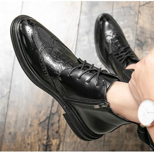 Black Black Wingtip Brogues Pointed Toe Work Boots for Men retro Lace-up up-to-date Formal High Top Derby Oxfords Vintage Business Casual Dress Shoes with Zipper