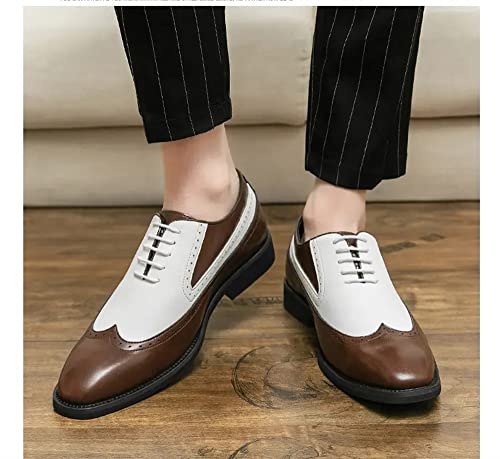 Why Choose Dress Oxford for Men Lace Up Two Tone Brown and White Wing tip PU Leather Anti-Slip Slip Resistant Low Top Wedding(Brown,10 M US)?