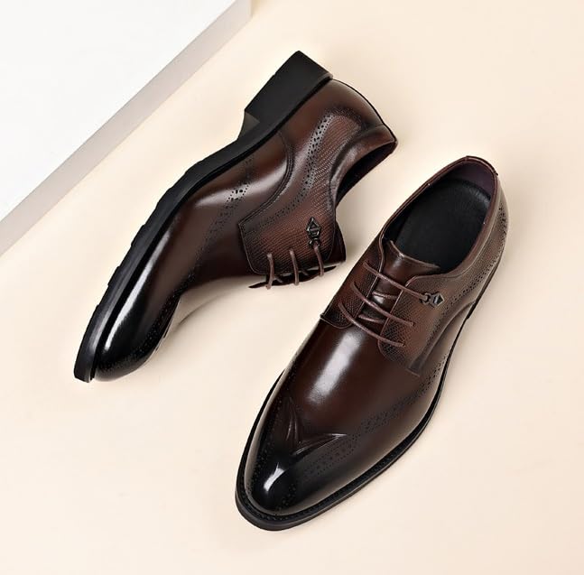 Outer material: PaperClosure type: Lace-UpLace-Up Design: Featuring a secure lace-up closure, these dress shoes provide a snug and adjustable fit, ensuring all-day comfort and stability for business meetings, weddings, and social events.Vintage Oxford Shoes: Designed with a classic vintage touch, these menβs leather Oxford shoes offer a sophisticated and trendy look, perfect for both formal and casual occasions.Platform Sole: The subtle platform design adds a modern twist while enhancing support and balance, making these Derby shoes a versatile choice for both formal and casual wear.Classic Leather Construction: Made from high-quality leather, these menβs dress shoes offer durability and a refined finish, ideal for pairing with suits, dress pants, or smart-casual outfits.Versatile for Any Occasion: Whether worn to the office, a wedding, or a casual gathering, these stylish Oxfords complement any wardrobe, making them a must-have for men who appreciate classic fashion with a modern edge. Perfect for everyday use. supreme materials and excellent craftsmanship ensure long-lasting durability.