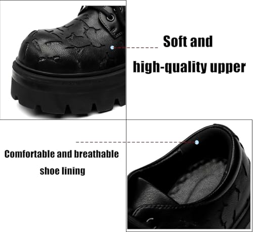 Origin: ImportedSole material: RubberOuter material: Faux LeatherClosure type: Lace-Up【Fashion Design】-These derby shoes cleverly blend the classic elegance of formal business attire with the chic elegance of modern casual wear. Their chunky sole and sophisticated, textured upper create a uniquely versatile style.【Comfort】-The shoes feature a rounded toe design, providing ample room for toes to move. The high-quality cushioning insole and sturdy thick sole effectively absorb impact when walking, ensuring comfort and fatigue-free feet even for long periods of standing or walking.【High-quality Materials】-The upper is crafted from high-quality synthetic leather with a distinct texture and durability. The traditional lacing structure and Goodyear-style stitching ensure the shoe's sturdiness and durability, highlighting its superior quality.【Anti-slip and wear-resistant】-The outsole has anti-slip grooves, providing strong grip and ensuring your safety when walking on wet or slippery roads. The wear-resistant material extends the service life of the shoes.【Occasion】-Whether it's an important business meeting, an everyday office routine, a casual semi-formal get-together, or a wedding, this shoe is the perfect match. Its distinctive design makes it an ideal choice for bridging the gap between work and leisure. Perfect for everyday use. supreme materials and excellent craftsmanship ensure long-lasting durability.