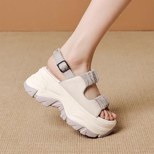 More information about Women'S Leather Double Monk Strap Open Toe Platform Sandals,Summer Fashion Rhinestones Slip-On Casual Shoes,Breathable Comfy Beach Sneakers