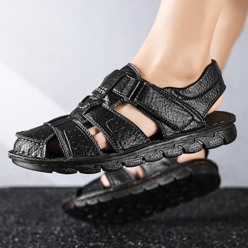 Men's Summer Handmade Leather Sandal Sport Sandals Closed Toe Outdoor Beach Shoes