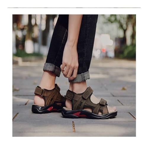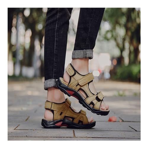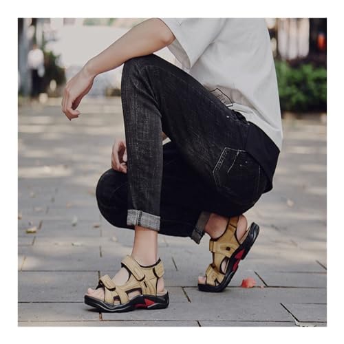 popular ! VOODUE Men Sandals Summer Genuine Leather Sandals Men Outdoor Shoes Men Leather Lightweight Breathable Sandals Plus Size 48 (Color : Khaki, Size : 40 EU)